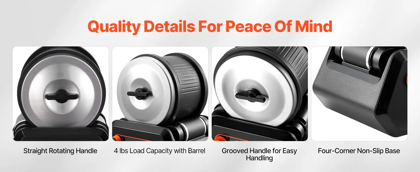 De steenpolijstmachine heeft een verbeterd cilinderontwerp met hoge dichtheid en een gemakkelijk losgeschroefd deksel. Het doordachte gegroefde handvat en de antislip rubberen voetjes zorgen voor een stabiele en veilige stand tijdens het werken.
