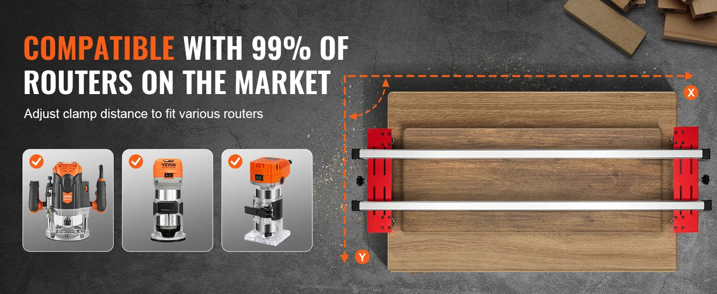 Fits Most Routers: With adjustable clamping distance, our VEVOR router sled is a versatile tool that adapts to most routers. It is widely used in woodworking factories and furniture factories that require processing large wood materials, and DIY home decor projects.