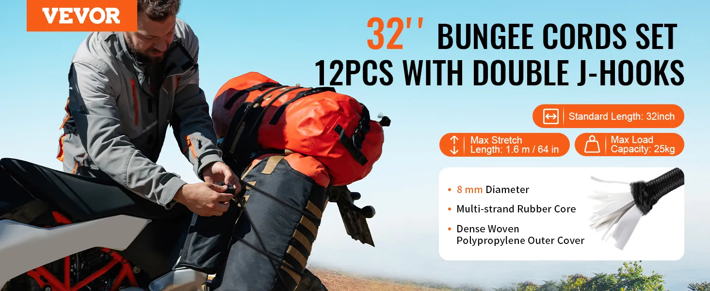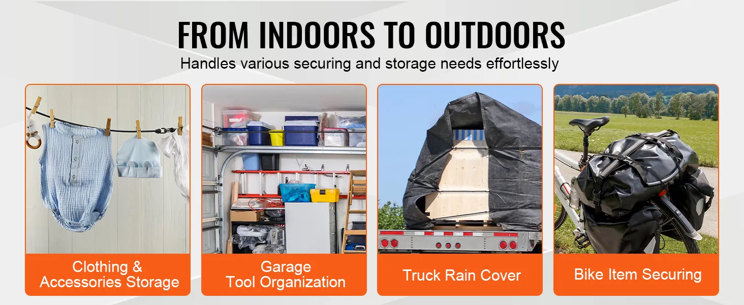 Met hun ultralange elastische bungeeriemen zijn ze perfect voor het opbergen van spullen in verschillende vormen en maten. Ze zijn essentieel voor gemakkelijke opslag en veilig transport.