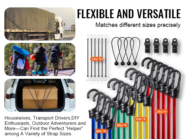 Flexibility: With multiple size options available, these bungee ropes offer high flexibility. Whether for small, delicate items or large, heavy cargo, there's a suitable size for every need.