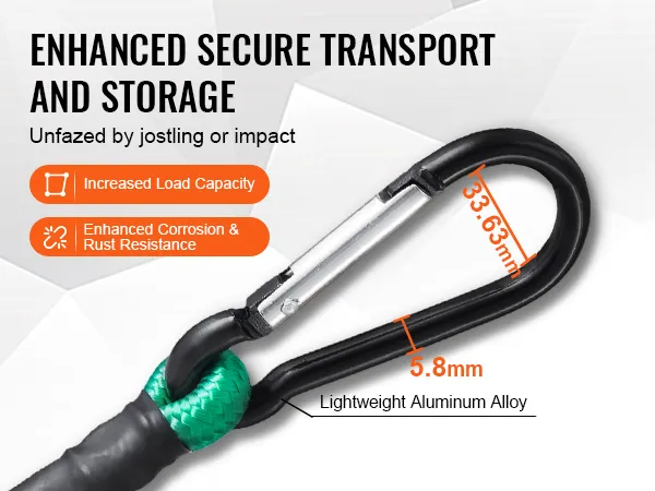 Designed for secure transport and storage, the high-strength hooks on these bungee cord sets resist deformation and breakage, providing extra safety by protecting items from bumps and impacts.