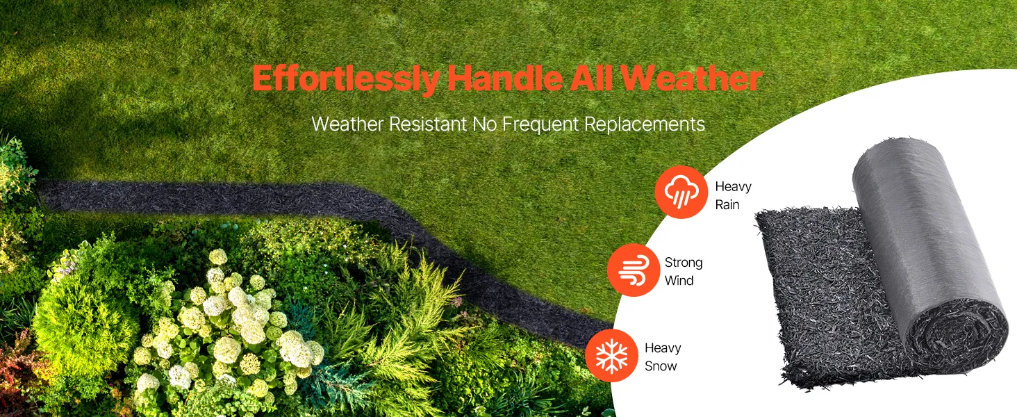 Voorkomt modder: Deze mulchrol is ideaal voor natte ruimtes. Het helpt modder te verminderen en zorgt voor een schone, duidelijke scheiding tussen bloemperken en gazons. Zelfs na een regenbui kunt u buitenactiviteiten ondernemen zonder vies te worden.