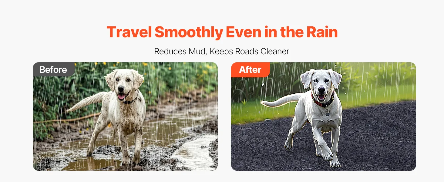 Wanneer u deze rubbermulch in uw tuin legt, voorkomt u dat er modder ophoopt. Zo kunnen uw huisdieren ook bij regenachtig weer buiten spelen zonder te spetteren. Het is ook ideaal voor terrassen, looppaden en buitenspeelplaatsen, omdat het de omgeving schoon houdt, zelfs als het nat is.