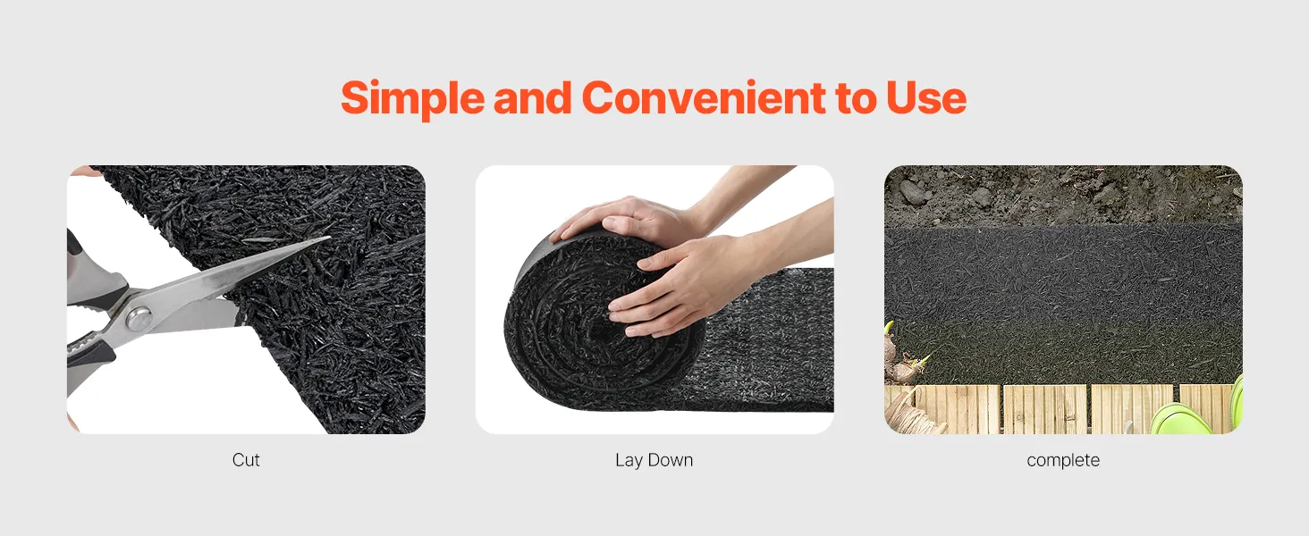 Onkruidbestrijding: Deze rubberen mulchrol voorkomt effectief de groei van onkruid door zonlicht te blokkeren en te voorkomen dat onkruidwortels binnendringen. Het stevige en dikke ontwerp zorgt voor een langdurige onkruidbestrijding.
