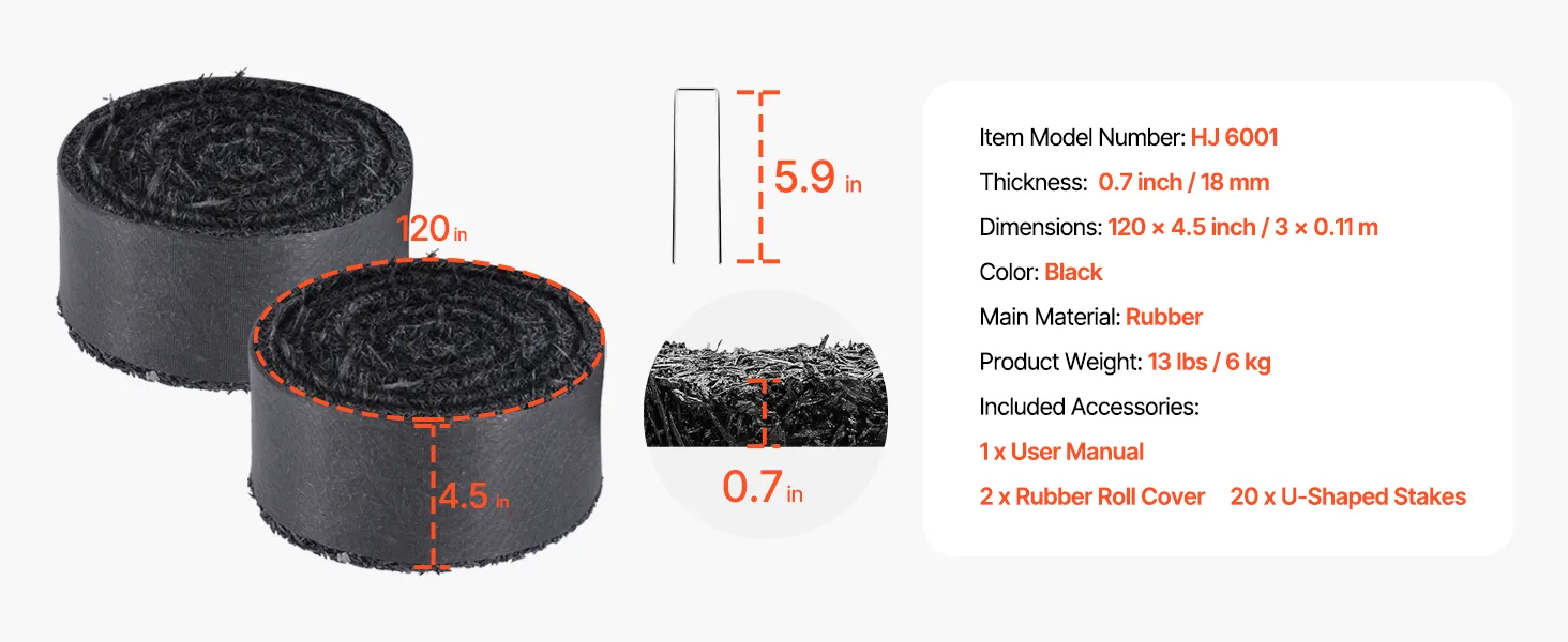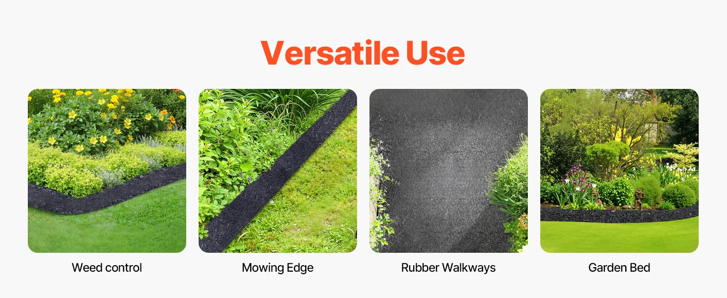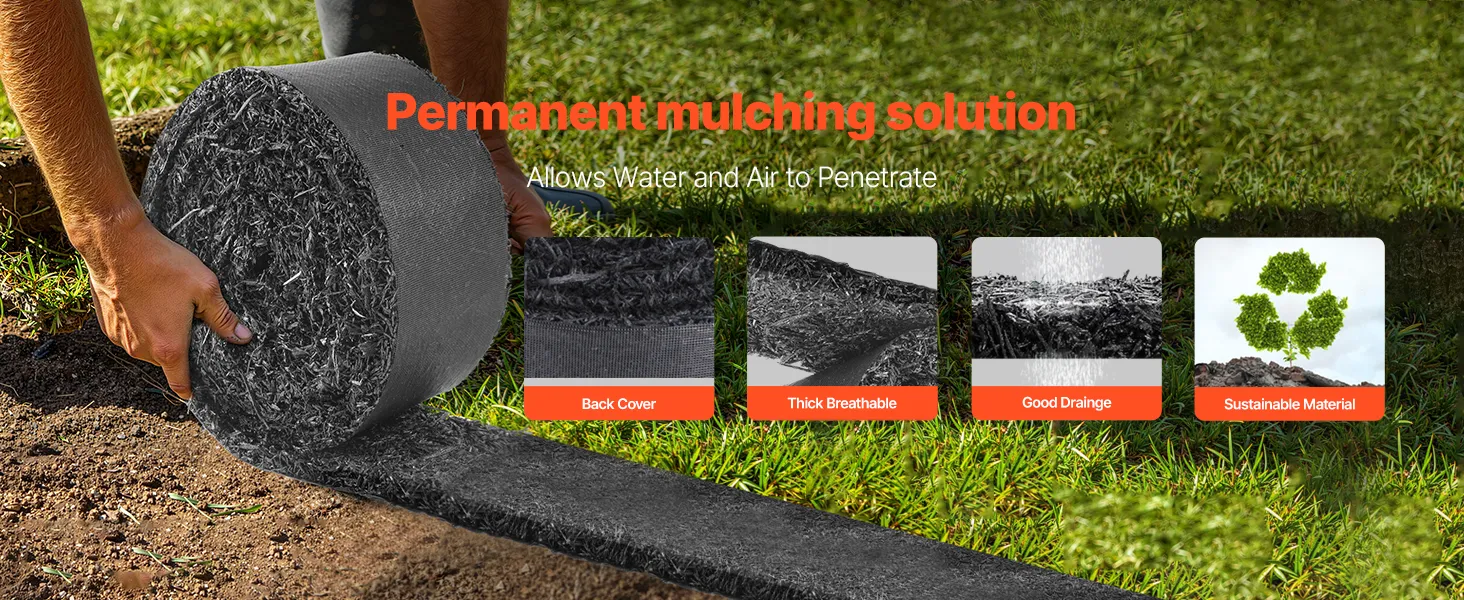 Onkruidbestrijding: Deze rubberen mulchrol voorkomt effectief de groei van onkruid door zonlicht te blokkeren en te voorkomen dat onkruidwortels binnendringen. Het stevige en dikke ontwerp zorgt voor een langdurige onkruidbestrijding.