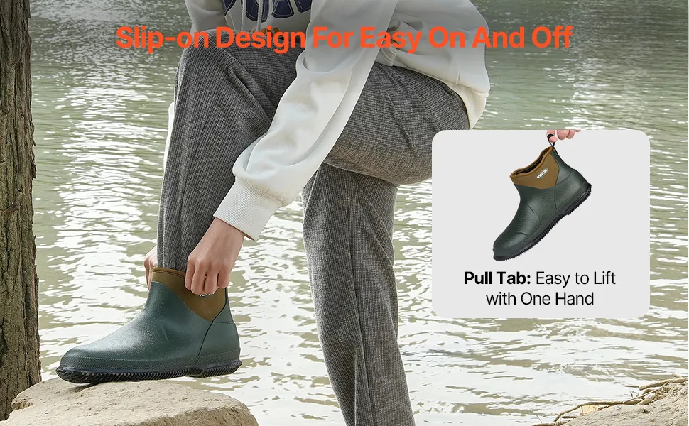 Dankzij het eenvoudige ontwerp zijn deze rubberlaarzen gemakkelijk aan en uit te trekken, waardoor u kostbare tijd bespaart.