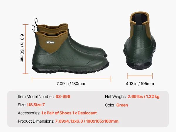 VEVOR Women's Deck Boots, Waterproof Fishing Rain Boots, Anti-Slip Ankle Rubber Boots, Gardening Insulated Mud Boots, Neoprene Rubber, Lightweight & Durable, for Manufacturing, Farming, Size 7 US VEVOR Women's Deck Boots, Waterproof Fishing Rain Boots, Anti-Slip Ankle Rubber Boots, Gardening Insulated Mud Boots, Neoprene Rubber, Lightweight & Durable, for Manufacturing, Farming, Size 7 US