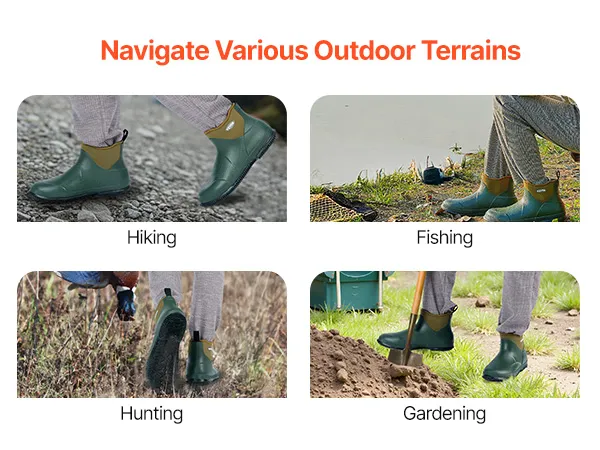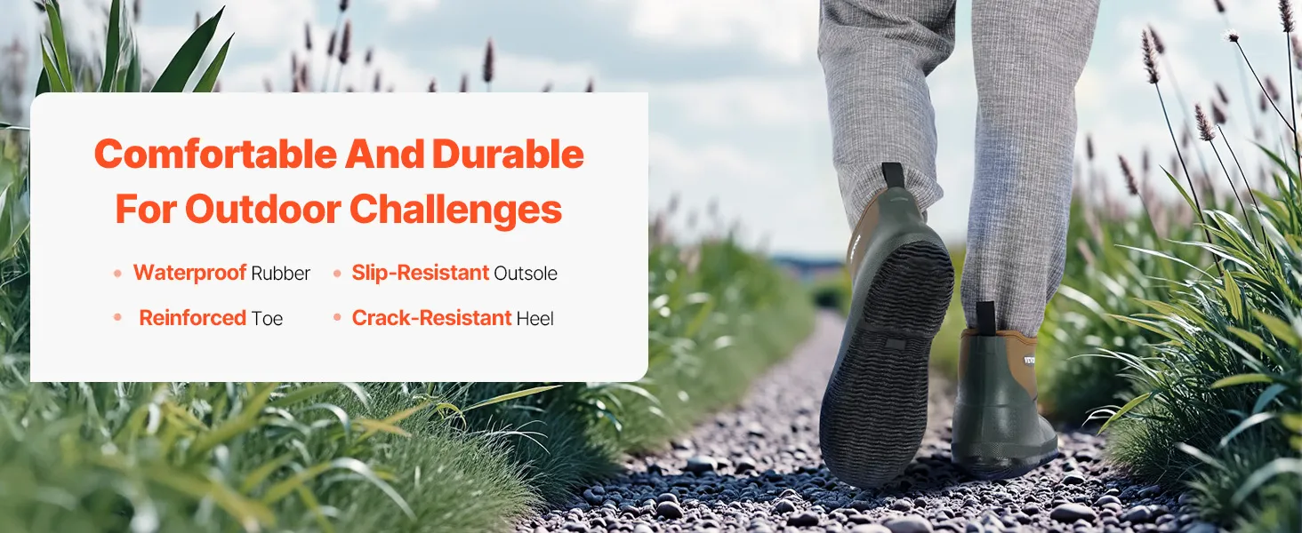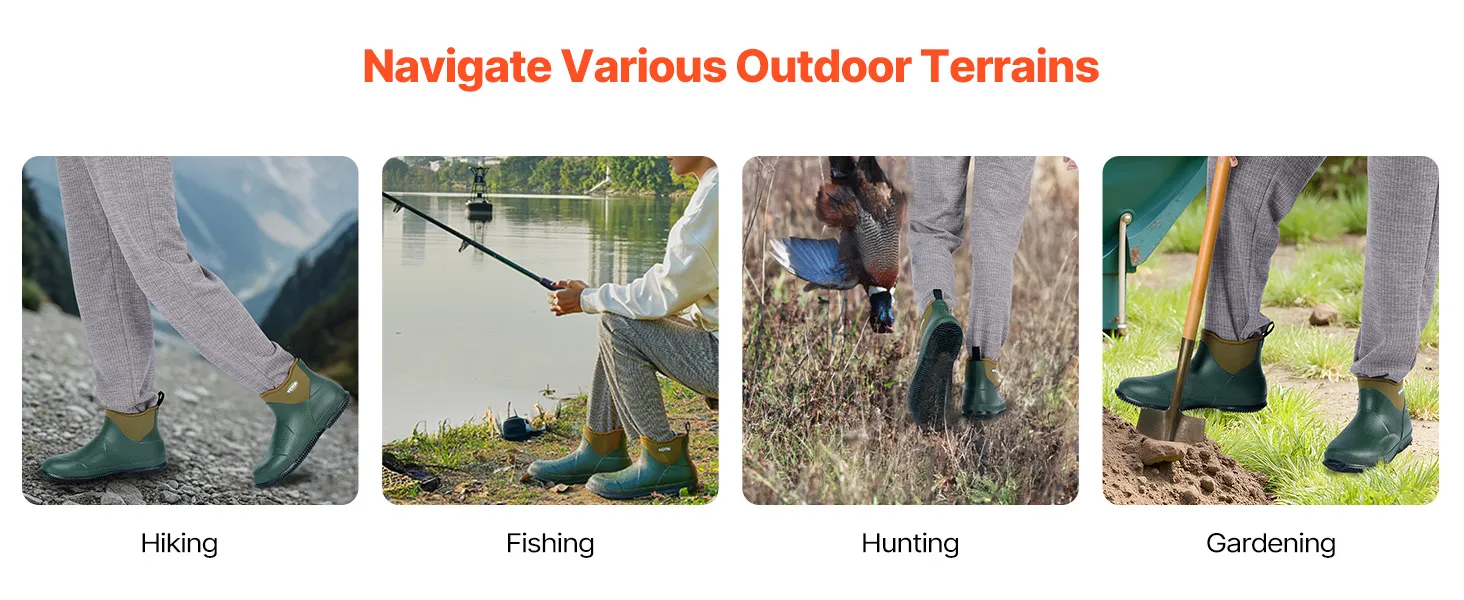 Crafted from durable rubber, these outdoor shoes feature a slip-resistant outsole design, reinforced toe, and crack-resistant heel, allowing you to conquer outdoor challenges effortlessly while enjoying a comfortable and long-lasting wearing experience.