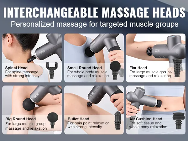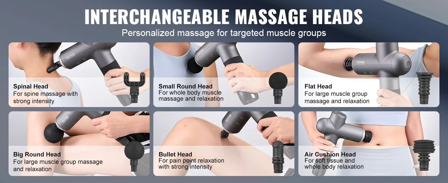 Featuring 6 interchangeable massage heads, this portable handheld massager offers personalized massages tailored to different muscle groups and needs. Whether for deep tissue massage or surface relaxation, it delivers comprehensive comfort and relief.