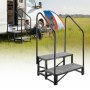 Sturdy & Stable with High Load Capacity: This 2-step RV stair is made of heavy-duty alloy steel with reinforced crossbars on the bottom and a triangular support structure, supports up to 660 lbs / 299.38 kg