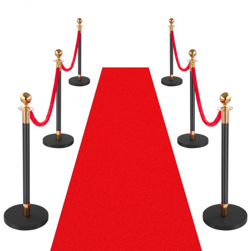 VEVOR 6-delige afzetpaalset met rode loper (10 m) en 4 rode fluwelen touwen (1,5 m), navulbare voet voor concerten, tentoonstellingen, hotels, bioscopen (zwart)