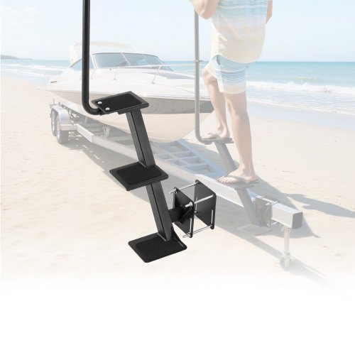 VEVOR Bootaanhangertrap, 3 treden, koolstofstalen bootaanhangertrap met handgreep, antislipoppervlak en een montagehoek van 55°, geschikt voor frames van 3x3/3x5/4x4 inch, vloermontage