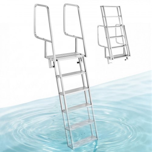 VEVOR Dock Ladder, 5-traps opvouwbare, 350 lbs aluminium pontonbootladder met brede treden en antislip sporten, zwevende tredenladder voor het instappen op schepen/meren/zwembaden/oceaan