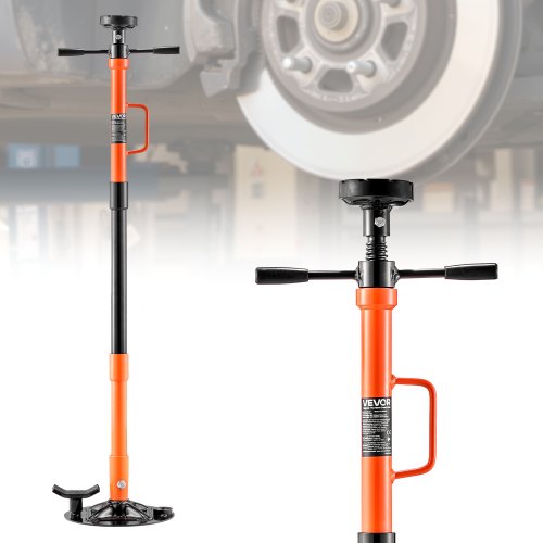 VEVOR Ondersteunende Krik 1 t, in hoogte verstelbaar (885–1800 mm) met kogelgelagerde draaihendel en zelfborgende schroef, voor het ondersteunen van voertuigonderdelen.