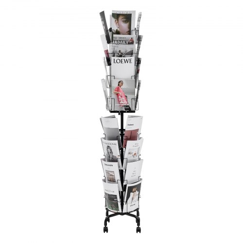 VEVOR Draaibare brochurestandaard, tijdschriftenrek met 30 compartimenten, metalen literatuurstandaard, catalogushouder, boekenstandaard, vloerdisplay, krantencatalogushouder voor kantoorshows en tentoonstellingen