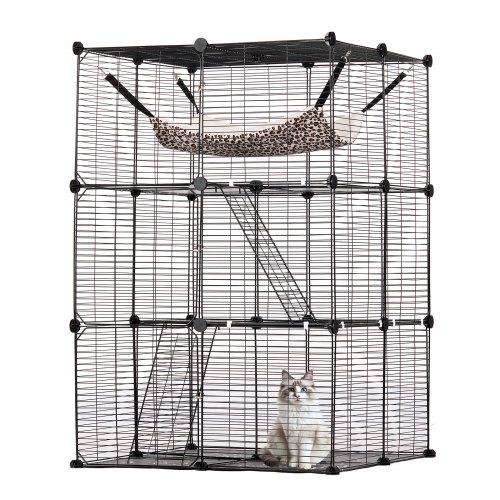 VEVOR 3-laags kattenkooi, 711 x 711 x 1041 mm, afneembare doe-het-zelf metalen draadkattenomheining, duurzaam met grote hangmat, 2 oprijladders, metalen draadkooien voor binnen en buiten