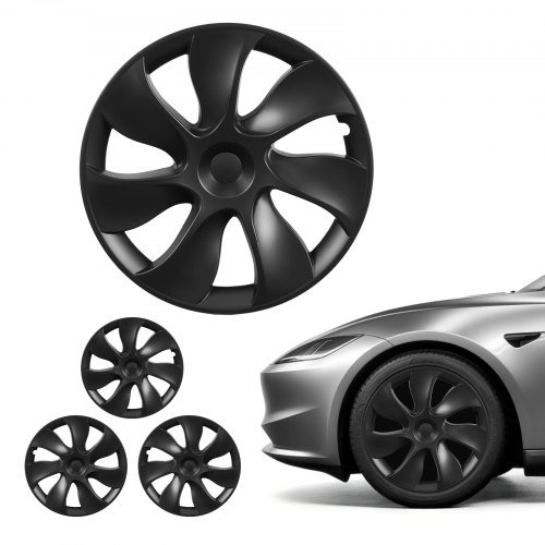 VEVOR 4 wieldoppen voor Tesla Model Y 21-24, 19 inch wieldoppen gemaakt van ABS-kunststof, set van 4 wieldoppen met 7 spaken en kliksysteem, R19 wieldoppen voor decoratie en stofbescherming, matzwart