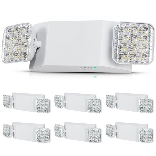 VEVOR 6-pack commerciële noodverlichting, 3W witte LED-uitgangsverlichting met 180 minuten reservebatterij, verstelbare vierkante kop met 2 LED's, plafond- of muurmontage voor stroomuitval in bedrijven