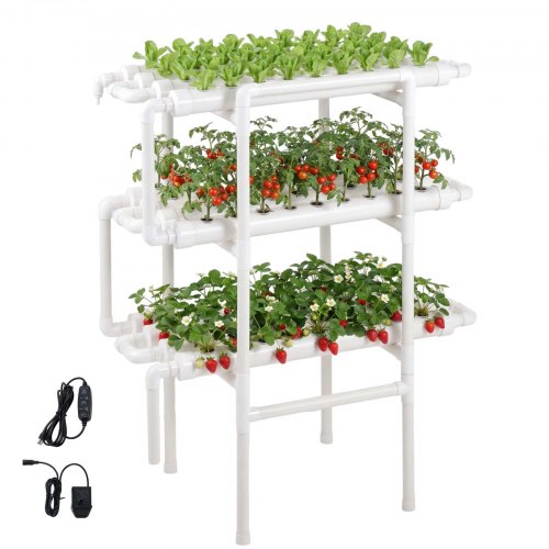 VEVOR Hydroponisch Plantensysteem, 3 Niveaus, 108 Plaatsen, UPVC-buizensysteem met Timer voor Watergift, Lichtdichte Buizen, Geschikt voor het Kweken van Groenten, Fruit & Kruiden