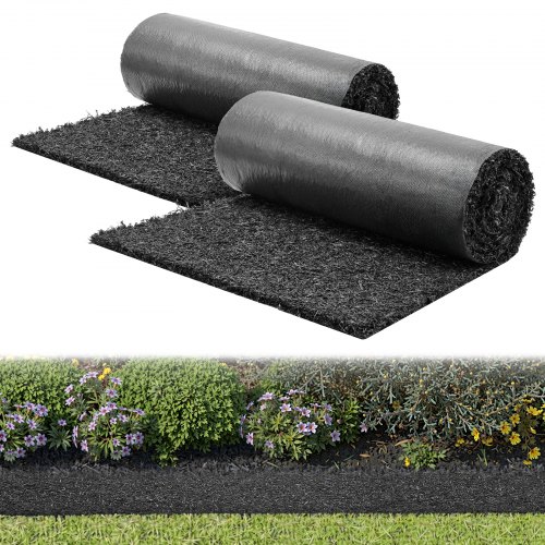 VEVOR rubberen mulchmat, 2 rollen van elk 244x61 cm, onkruidbestrijdingsmat van 1,3 cm dik, tuinvlies, onkruidwerende mat, tuinrand, border mat, looppadmat voor landschapsarchitectuur
