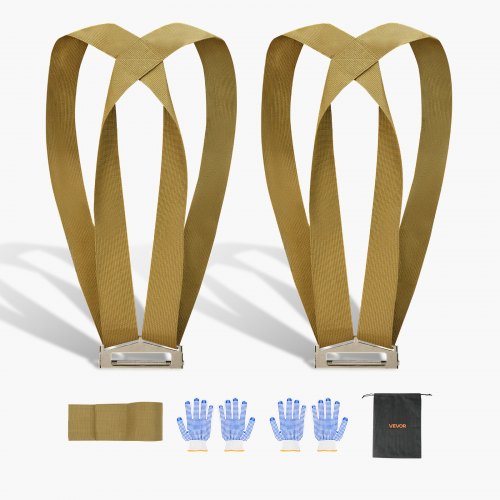 VEVOR hefbanden, ondersteunt tot 453,6 kg, 2-persoons hef- en transportsysteem met 2 banden en 2 draagriemen, verstelbare hefbanden voor het vervoeren van meubels, apparaten en matrassen