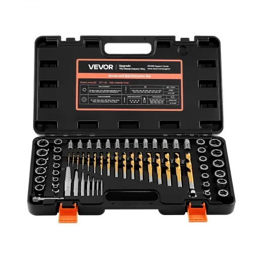 VEVOR 65-delige bout-, moer- en schroefverwijderset met boortjes, schroefverwijderaars met adapters en stevige opbergkoffer (zwart), schroefverwijderaars van chroom-molybdeenstaal voor het verwijderen van bouten, moeren en schroeven.