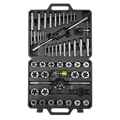 VEVOR 51-delige tap- en snijset, SAE-maten 1/4 tot 1 inch, met grove en fijne tappen en snijplaten, sleutel, draagtas en accessoires, lagerstaal