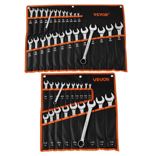 VEVOR 44-delige steeksleutelset (SAE & metrisch), combinatiesleutelset (12-punts) met oprolbare etui, combinatiesleutelset van koolstofstaal, voor algemene autoreparaties