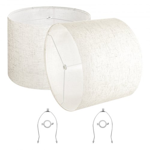 VEVOR Drum lampenkap 33 x 33 x 25 cm (boven x onder x hoog), 2 stuks middelgrote vervangende kappen van linnen + PVC, lampenkap voor tafellampen, staande lampen en hanglampen (crème)