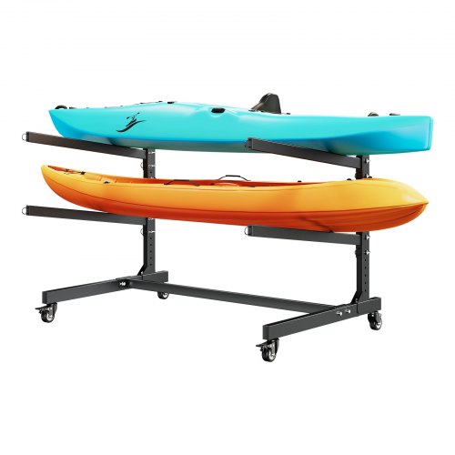 VEVOR Vrijstaande kajakopbergrek voor 2 kajaks/kano's/surfplanken/paddleboards, kajakstandaard met vergrendelbare wielen voor binnen- en buitengebruik, verstelbare kajakhouder 80 kg