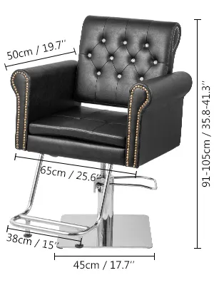 • 【 INSTALLEER & STABIELE BASIS 】 - Snel en eenvoudig te monteren deze kapper stoel inclusief alle accessoires. De roestvrijstalen basis biedt extra stabiliteit en antiroest. Het heeft een klassieke uitstraling en is bekleed met mode-elementen zoals glanzende kralen en bronzen knopen.