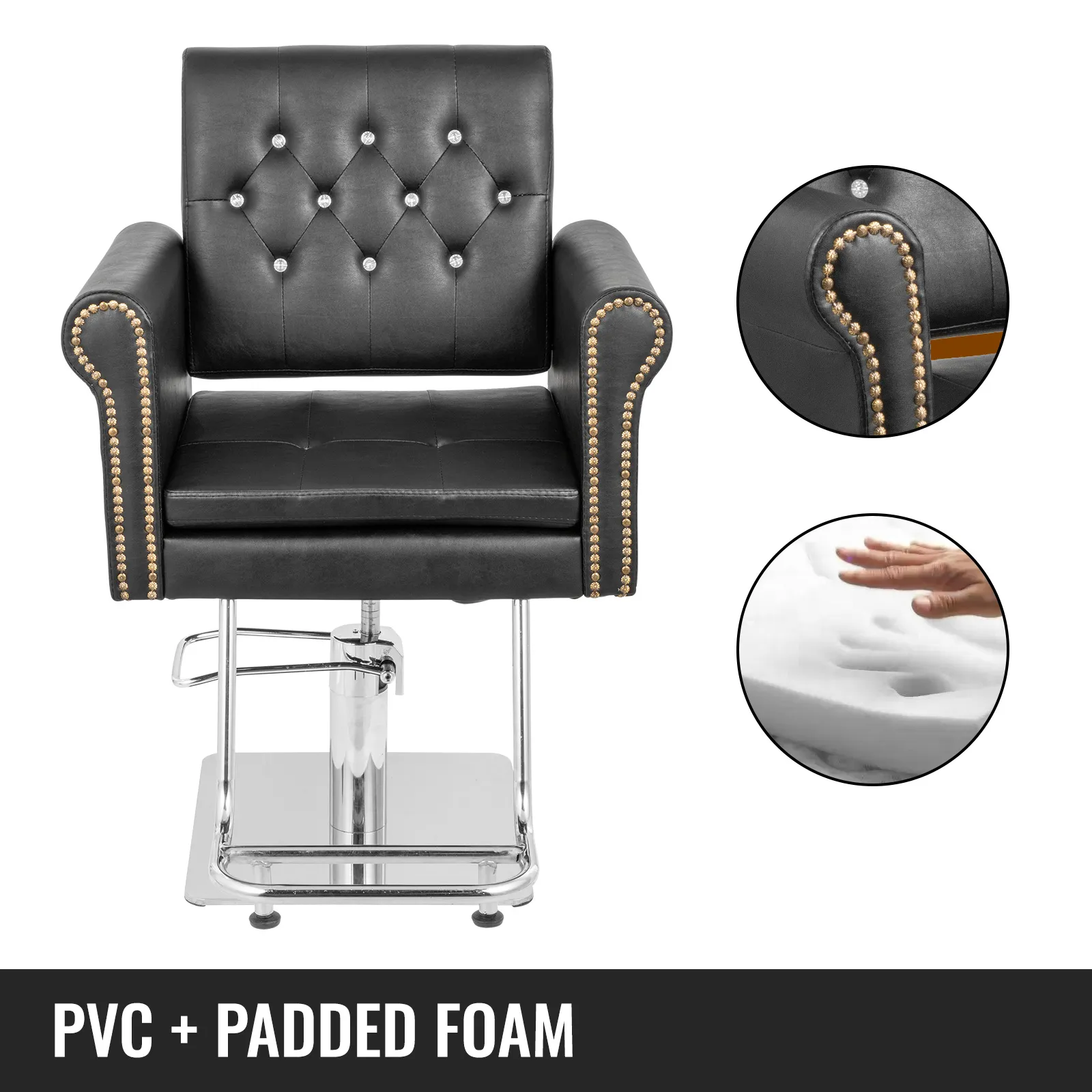 De salonstoel is opgevuld met dik schuim, wat een comfortabele en ergonomische zit ervaring biedt. Het is omwikkeld met ademend PVC leer.