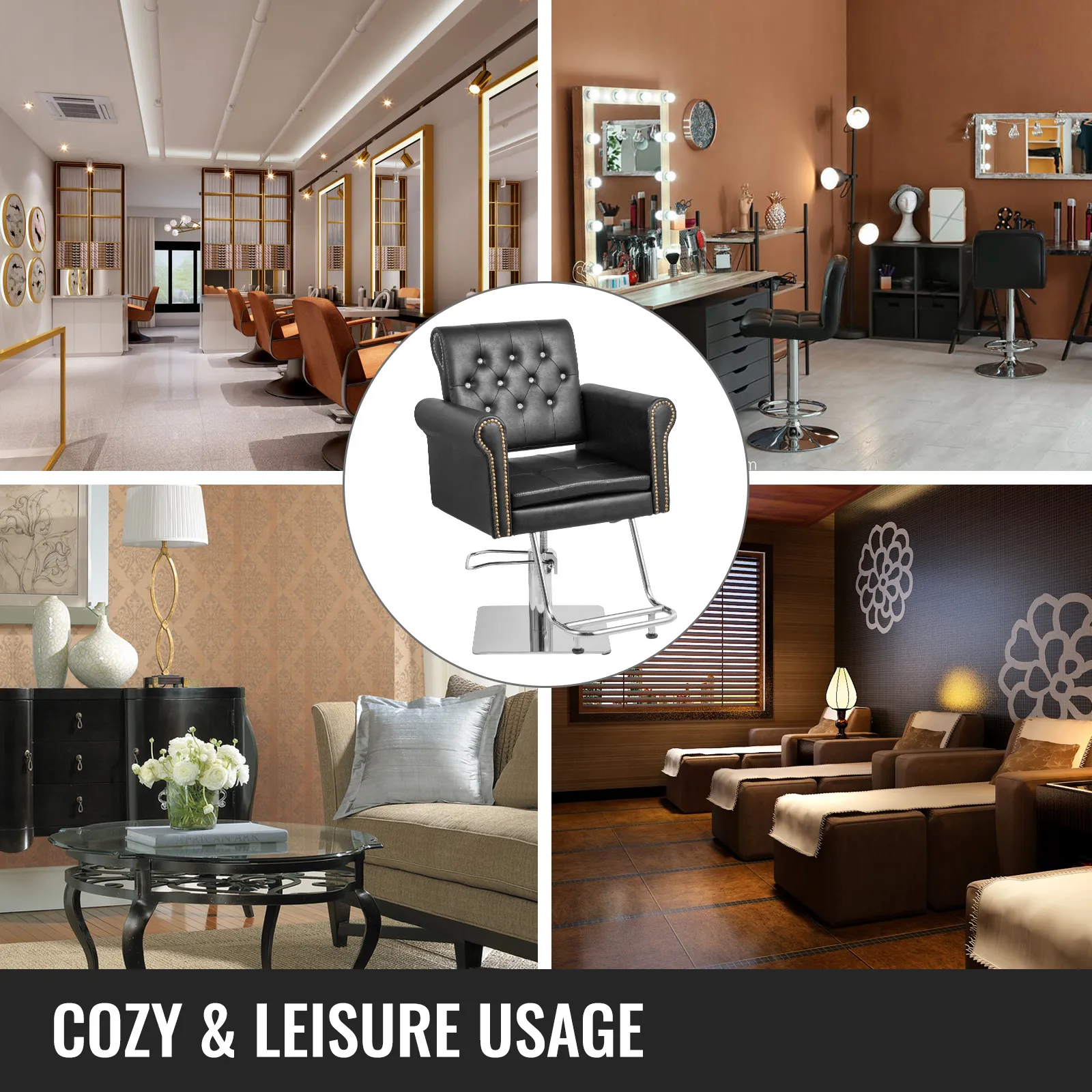 Vevor Hydraulische Kappersstoel Kapper Stoelen Salon In Hoogte Verstelbaar Zwart