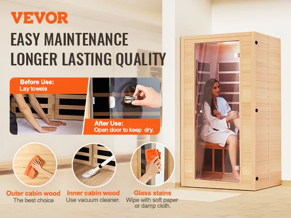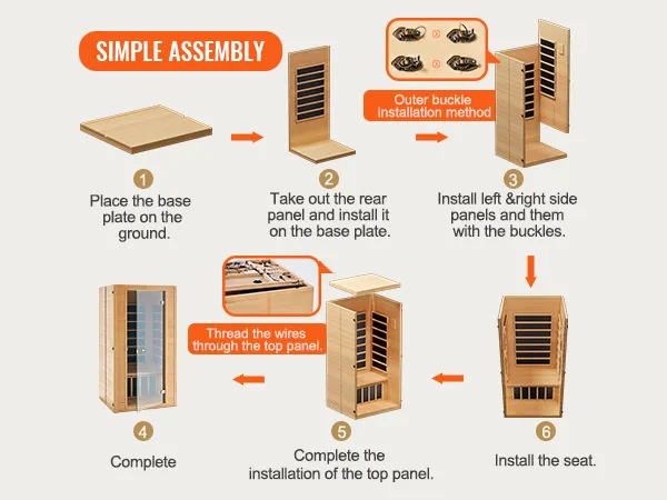 Pre-Assembled Design: The sauna room features a pre-assembled design, requiring only simple assembly upon receipt. Clear installation instructions and wiring diagrams are provided, eliminating the hassle of complicated screw fittings.