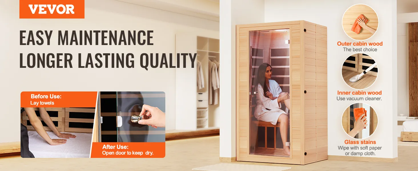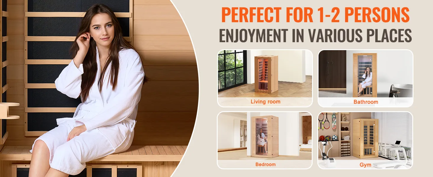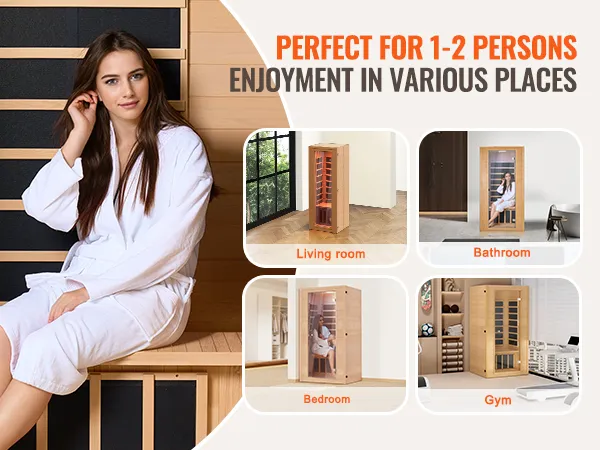 This sauna room's exquisite design makes it suitable for various locations. Whether in the living room, bathroom, bedroom, basement, or gym, you can enjoy the relaxation and comfort of a sauna anytime.