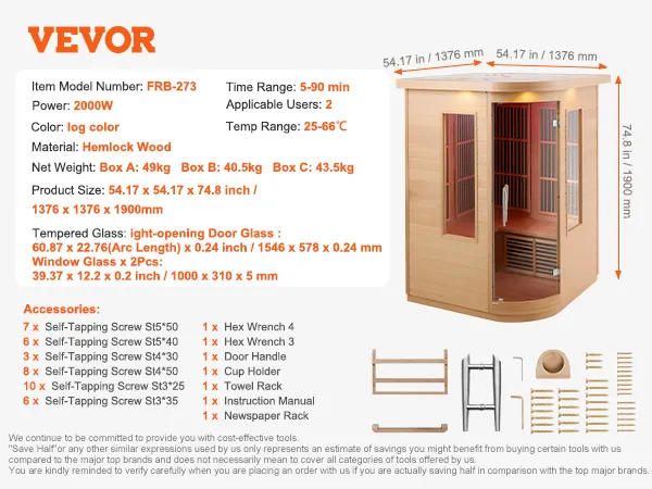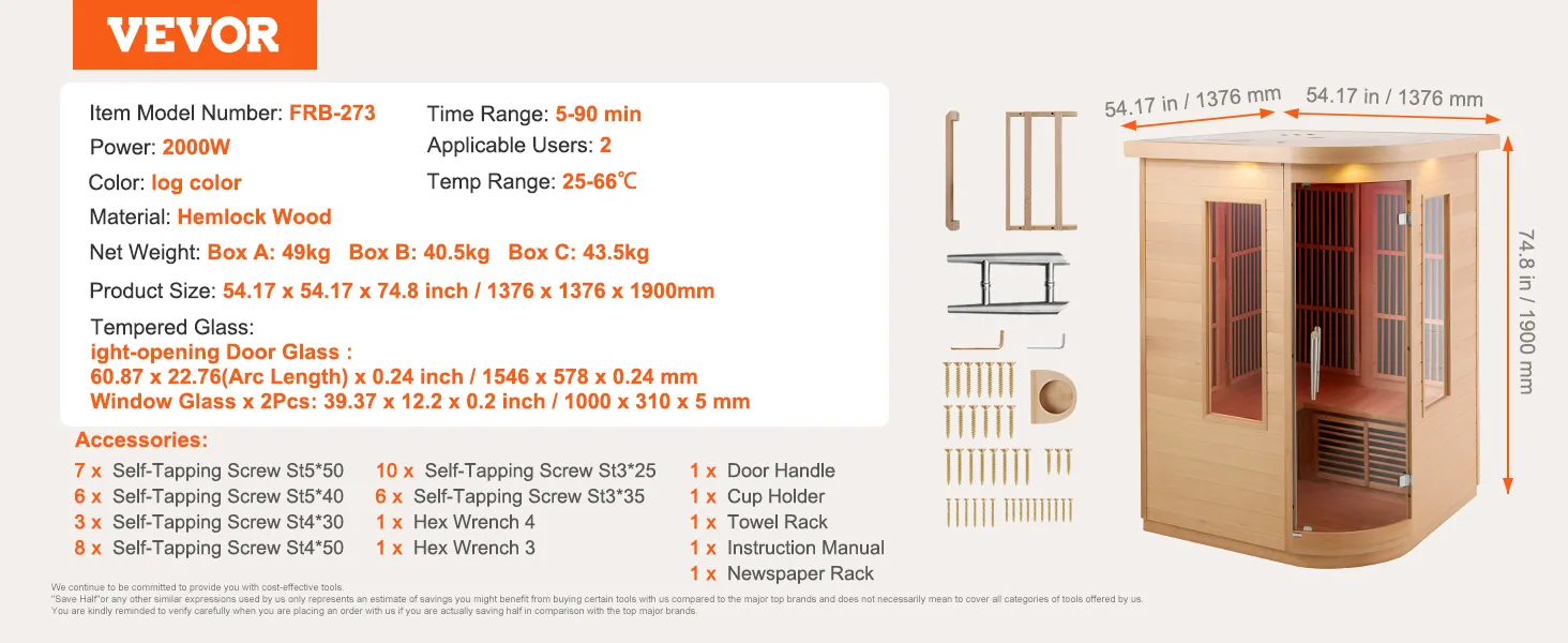 Perfect for Two People: With a compact size of just 54.17 x 54.17 x 74.8 inches, this mini sauna room provides an ultimate relaxation experience for one or two people. It can be conveniently installed in your living room, bedroom, basement, or even a personal gym.