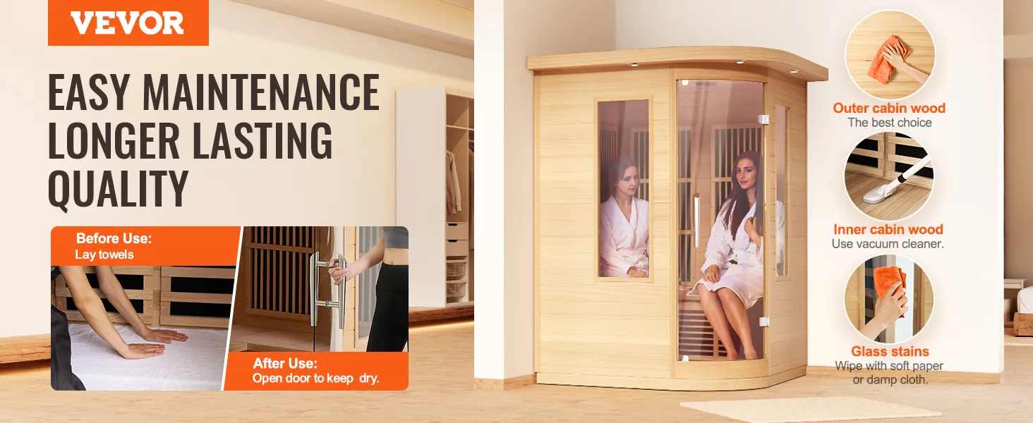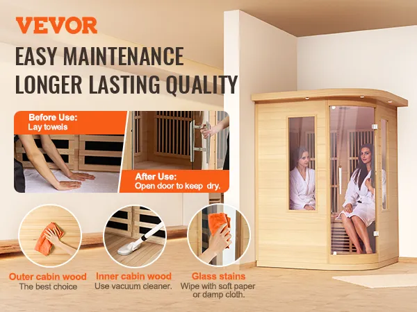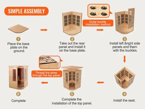 Pre-Assembled Design: The sauna room features a pre-assembled design, requiring only simple assembly upon receipt. Clear installation instructions and wiring diagrams are provided, eliminating the hassle of complicated screw fittings.