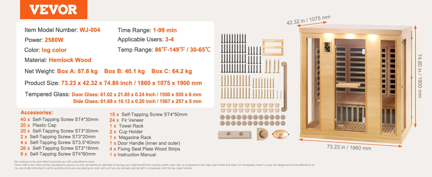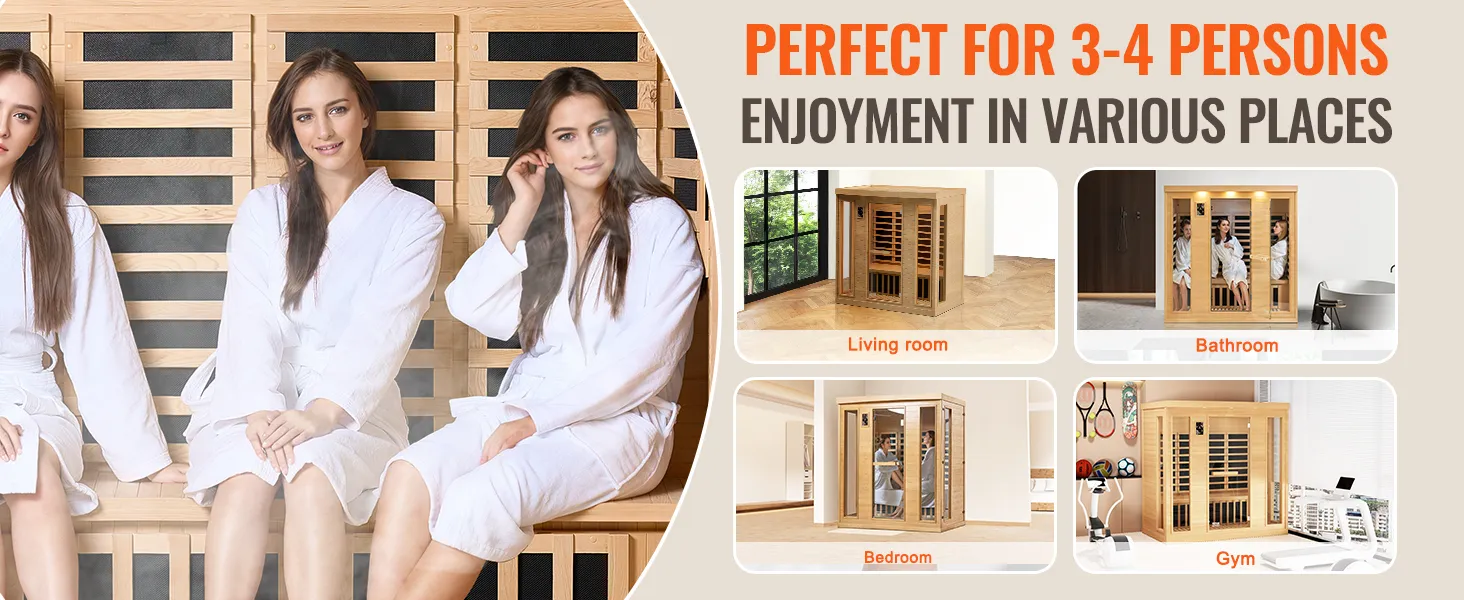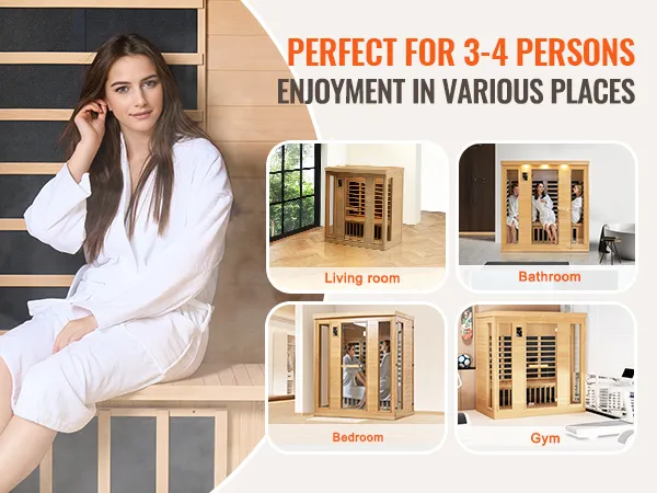 Perfect for 3-4 People: The spacious square design doesn't take up too much floor space, allowing you and your friends or family to enjoy an ultimate, relaxing sauna experience anytime, anywhere. It can be conveniently installed in your living room, bedroom, basement, or even a personal gym.