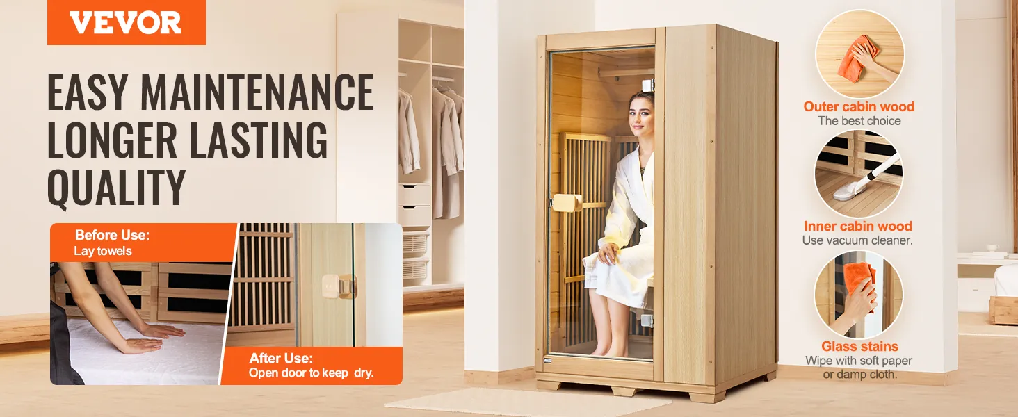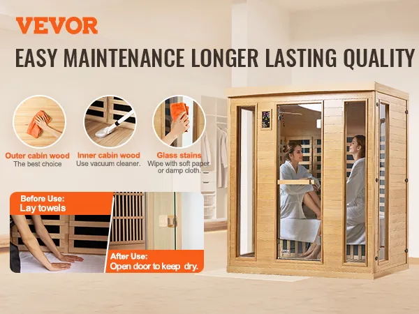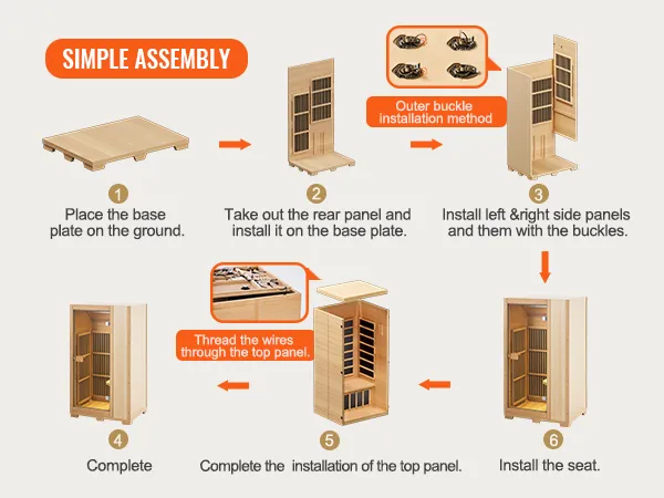 Pre-Assembled Design: The sauna room features a pre-assembled design, requiring only simple assembly upon receipt. Clear installation instructions and wiring diagrams are provided, eliminating the hassle of complicated screw fittings.