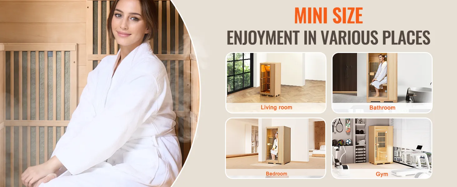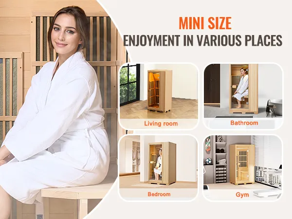 This sauna room's exquisite design makes it suitable for various locations. Whether in the living room, bathroom, bedroom, basement, or gym, you can enjoy the relaxation and comfort of a sauna anytime.