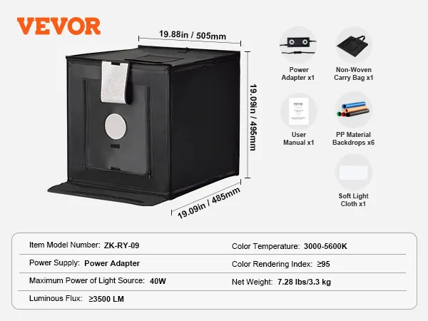 PROFESSIONELE ACCESSOIRES INBEGREPEN: Verbeter uw fotografie-ervaring met onze fotolichtbak, die is voorzien van een zachte, lichte doek en een drielaags voorpaneelontwerp. Dit accessoire elimineert effectief schittering op glanzende oppervlakken en ongelijkmatige verlichting, wat resulteert in professionelere foto's en de complexiteit van de nabewerking vermindert. Geschikt voor fotografen van alle niveaus, van beginners tot professionals.