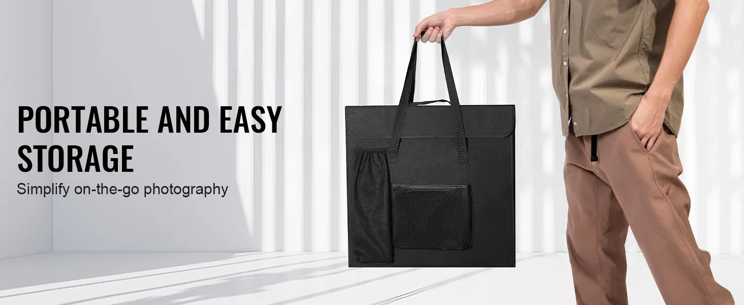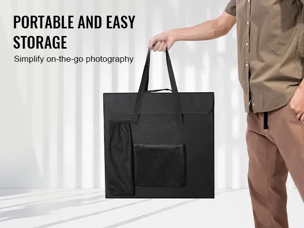 Draagbaar en opvouwbaar gemak: Ontdek het gemak van onze fotobox met zijn opvouwbare ontwerp en snelle klittenbandinstallatie. Eenvoudig op te zetten en op te bergen zonder dat er standaards, schroeven of complexe verlichtingsopstellingen nodig zijn. Onze lichtbak wordt geleverd met een draagtas van non-woven stof voor gemakkelijk transport en is perfect voor het maken van foto's van professionele kwaliteit, waar en wanneer dan ook.
