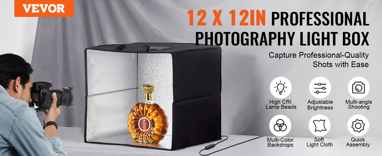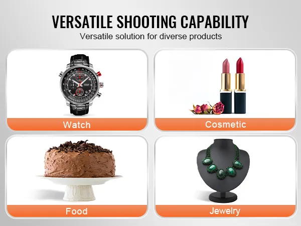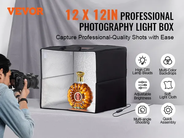Vergroot uw fotografische veelzijdigheid met meerdere lichteffecten en opnameopties vanuit meerdere hoeken. Met onze fotostudio-lichtbox legt u eenvoudig een verscheidenheid aan kleine producten vast.