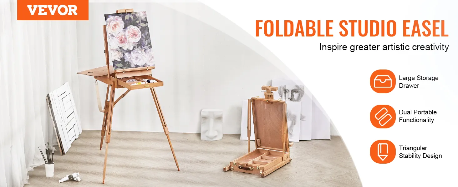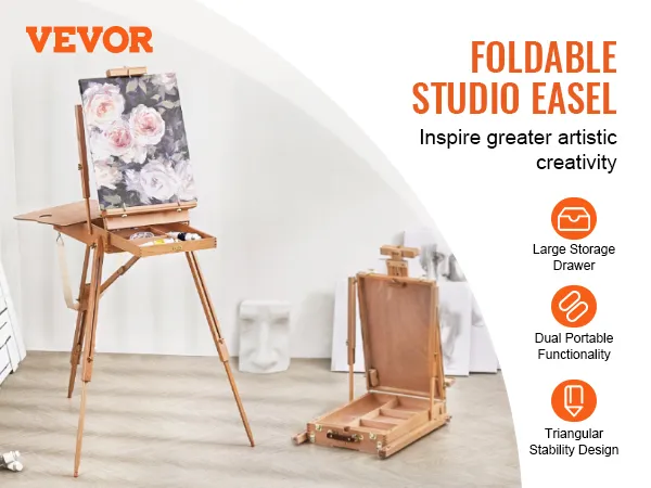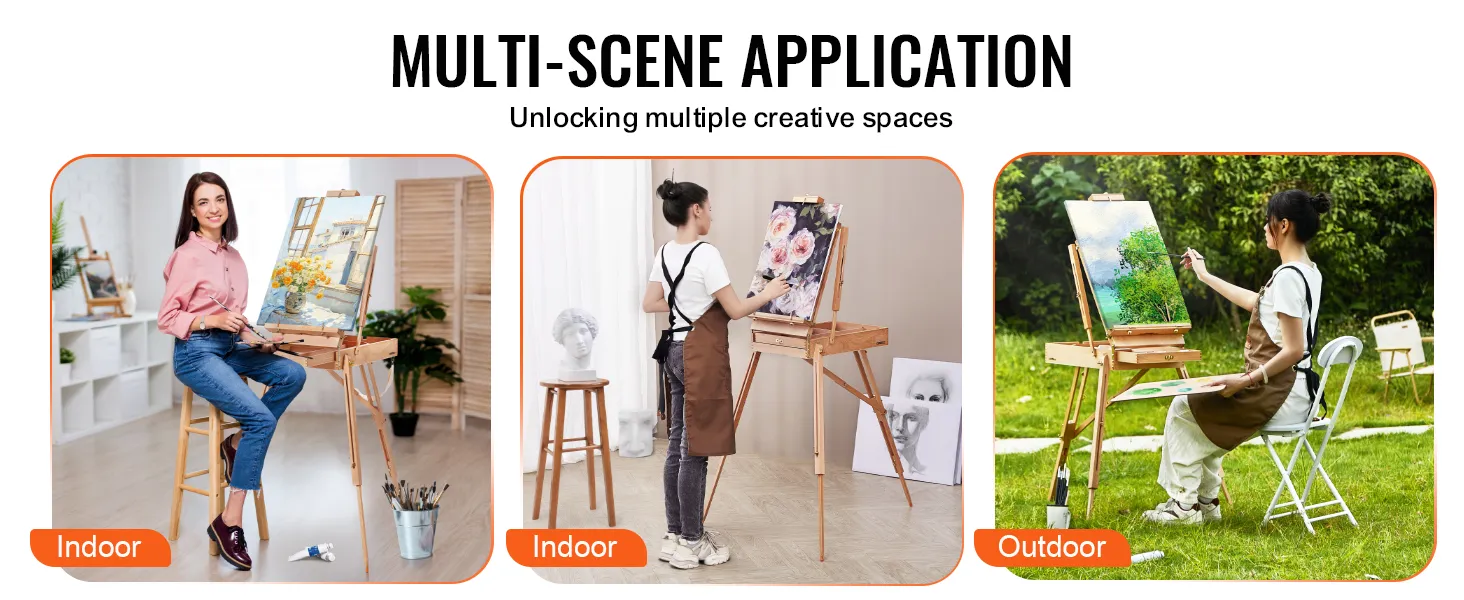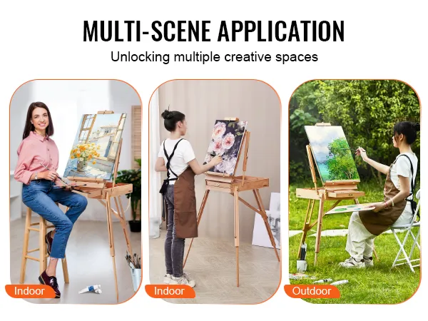 Of het nu in de rustige studio thuis is of midden in de natuur, deze houten schildersezel past zich moeiteloos aan elke omgeving aan. Dankzij het draagbare ontwerp kunt u uw creativiteit overal mee naartoe nemen.
