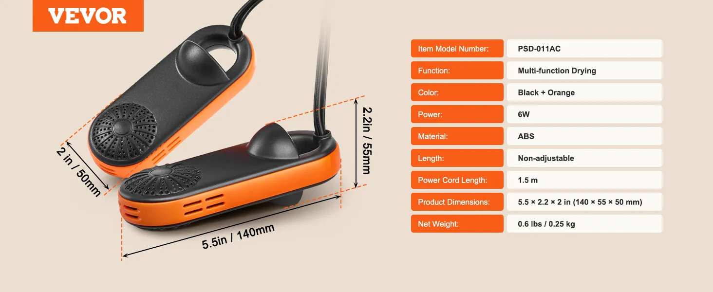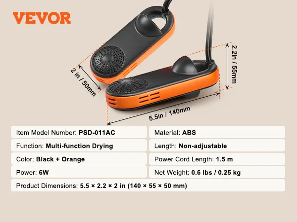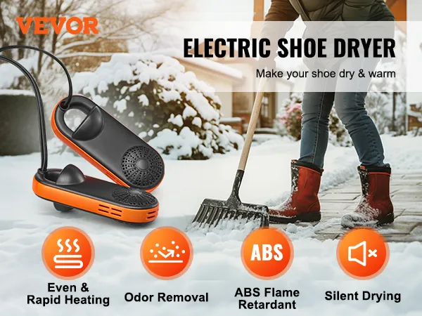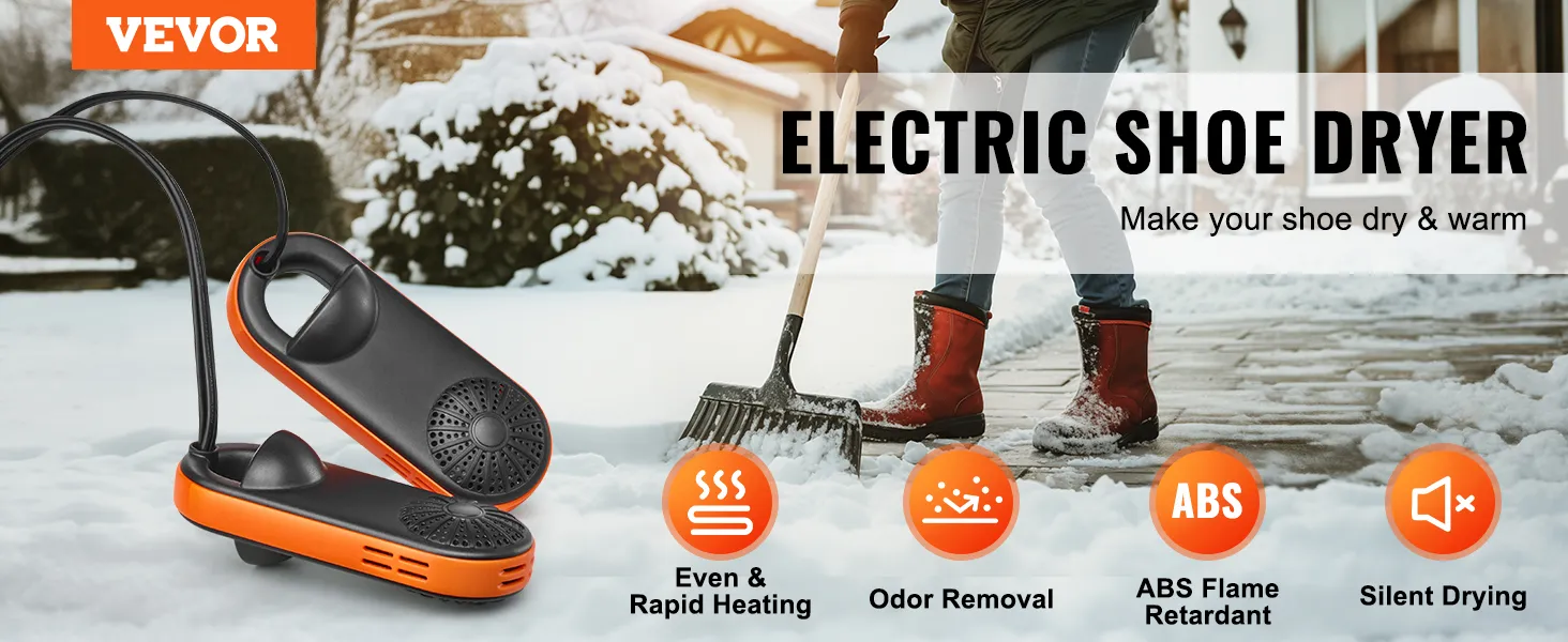 VEVOR Portable Shoe Dryer, Electric Boot Dryer with UVA, Deodorized Boot Warmers/Dryer with Quick & Even Drying for Cotton Slippers, Snow Boots, Leather Shoes, Canvas Shoes, Socks, Black & Orange