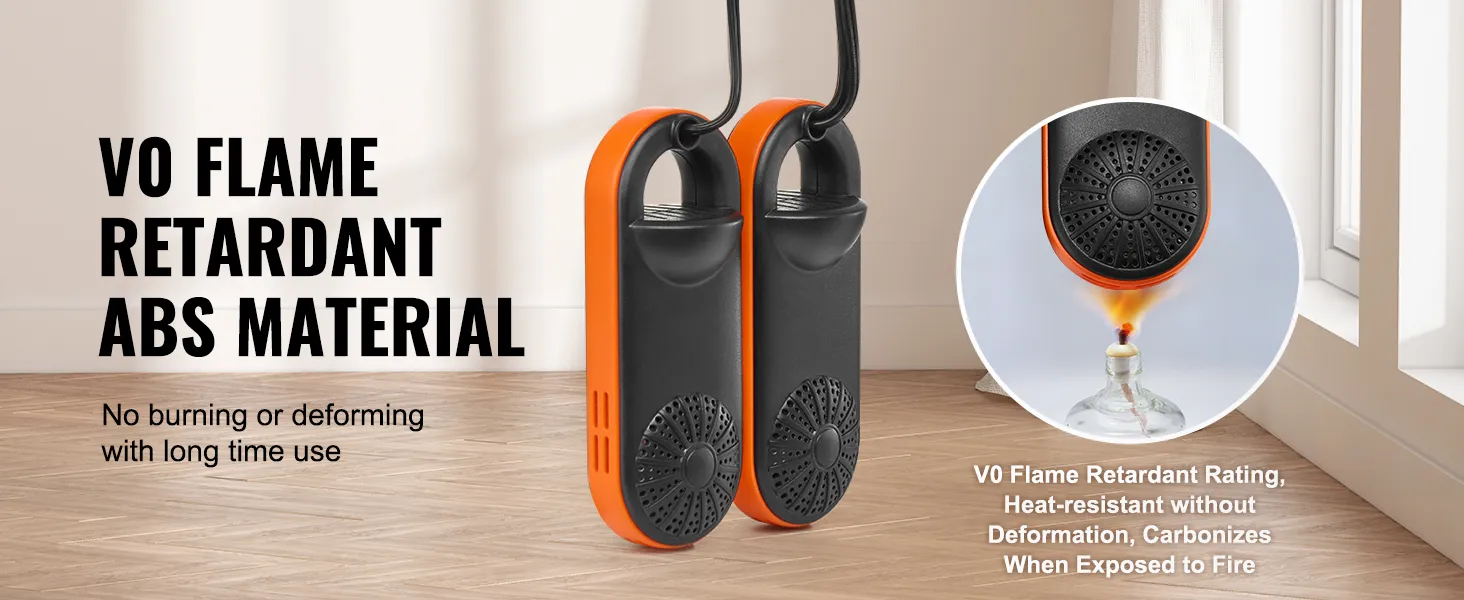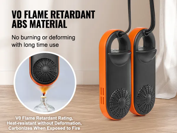 Safe Flame-Retardant Materials: The shell of our boot dryer is made of V0 grade ABS flame-retardant material. This high-temperature resistant material does not burn or deform even with prolonged use. In case of fire, it carbonizes naturally to stop the burning process, ensuring safer use.