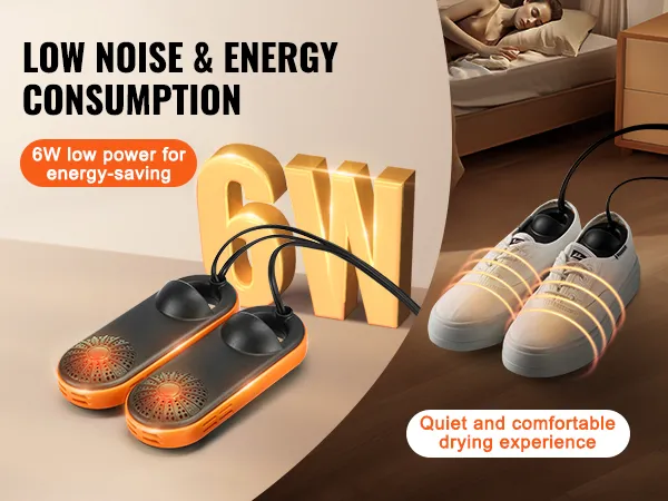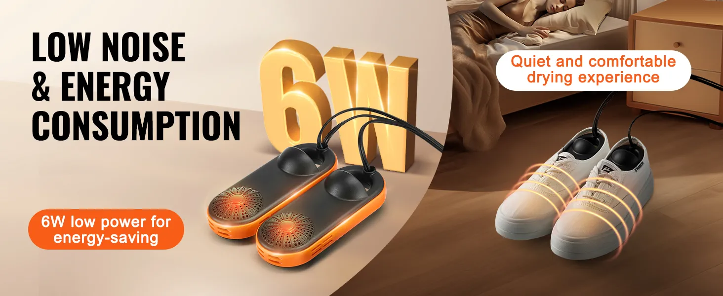 Low Noise & Energy Consumption: This shoe dryer/warmer has a power of only 6W, which is much less than a standard light bulb; it also operates very quietly, making it suitable for use at night without disturbing your rest. During use, make sure to check if your shoes are dry and turn off the power and remove the shoes when drying is complete.