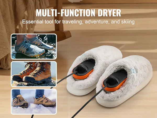 Suitable for various types and sizes of shoes, including sports shoes, cotton shoes, leather boots, travel shoes, and skiing boots, as well as some gloves and socks. Its compact and portable design makes it an essential tool for travel, adventure, and skiing.