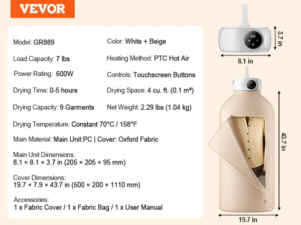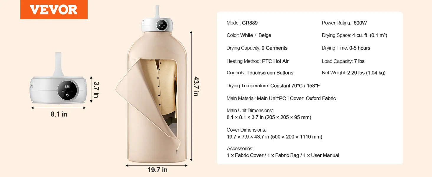 Het is ideaal voor mensen met een druk schema, voor frequente reizigers of voor kleine appartementen. Een praktische oplossing voor snel en efficiënt drogen.