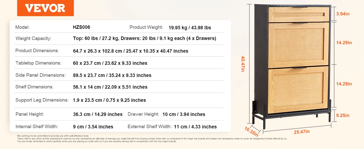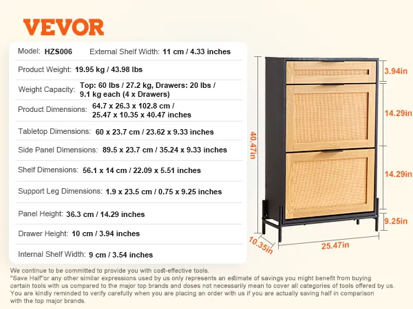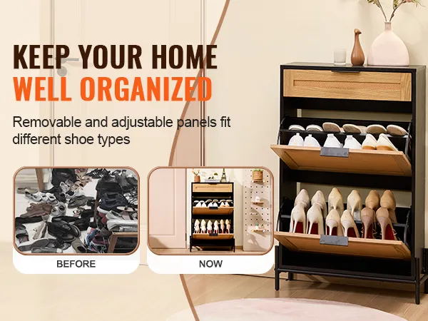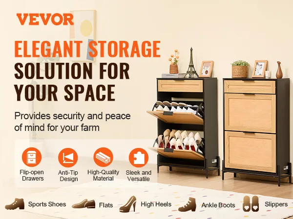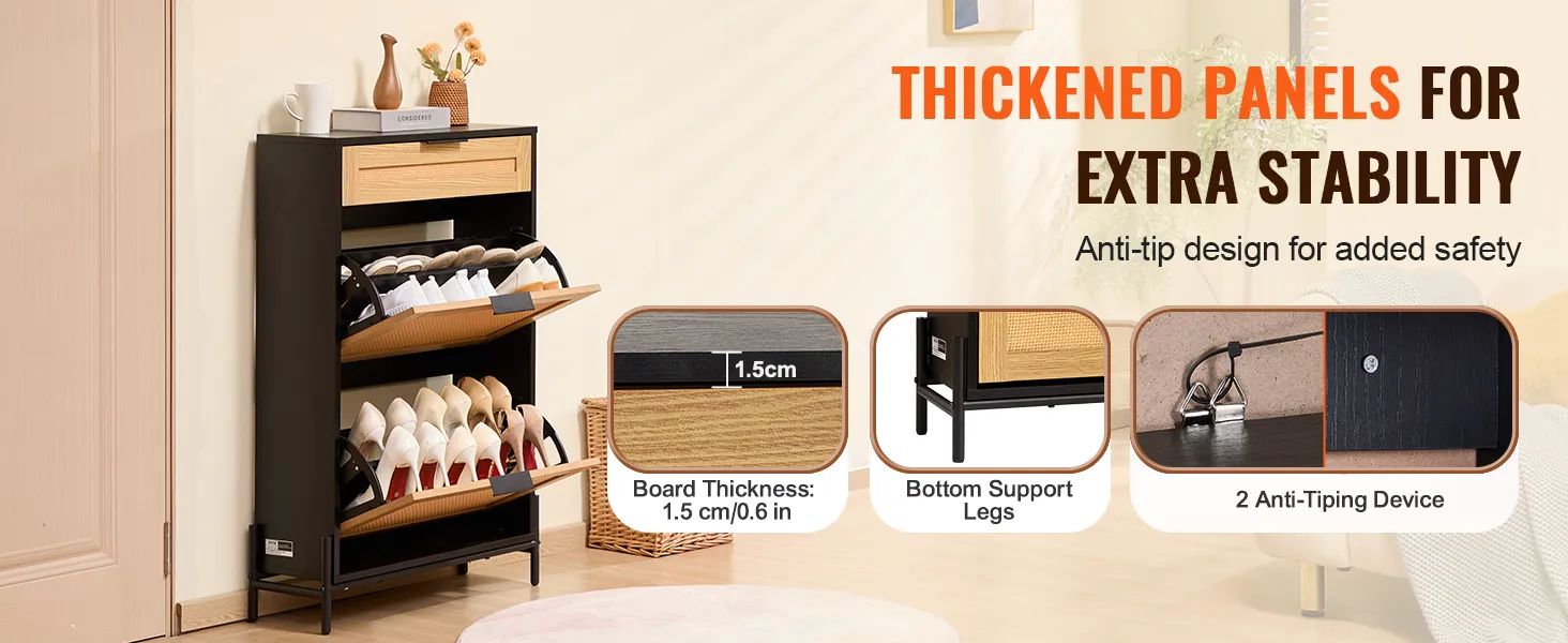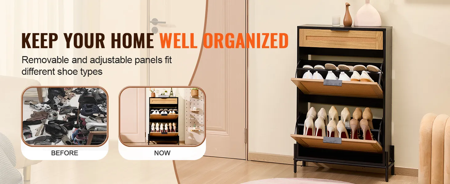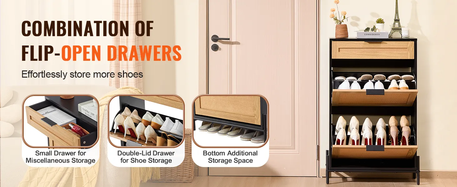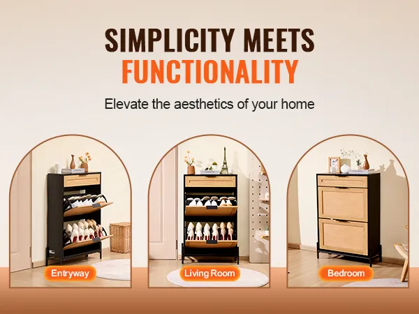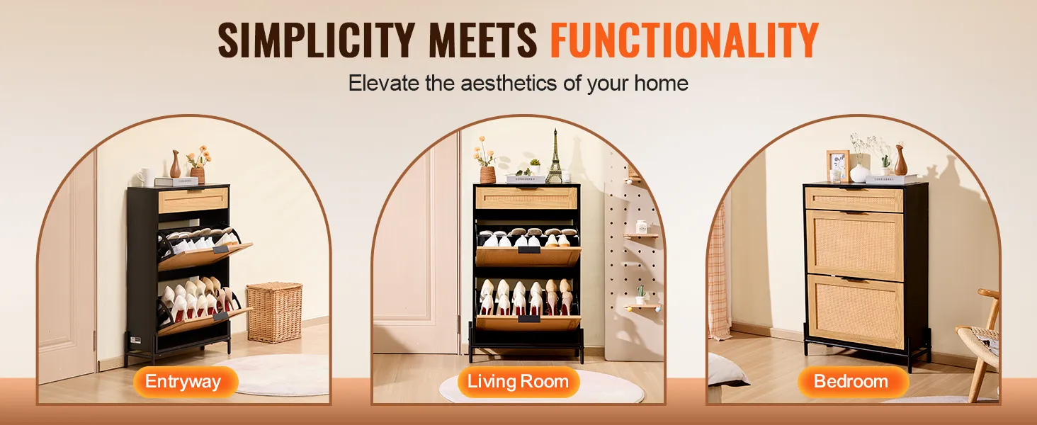 Transform your entryway with VEVOR multifunctional rattan shoe cabinet!